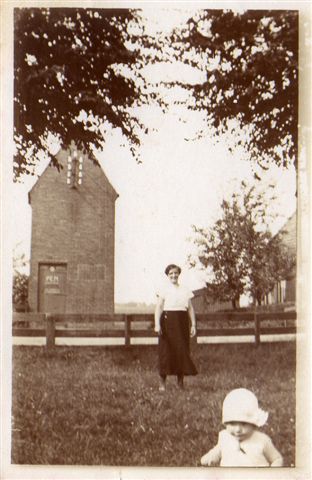 Op een van de fotoos zou een “kerk” te zien tussen nu fam. Groot en fam. Van Tilburg. Zie ook dit eerdere bericht