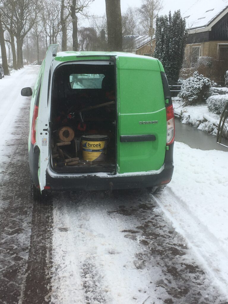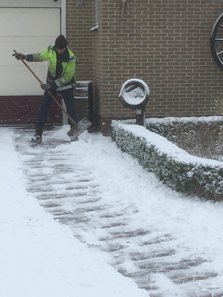 De barre (nou ja, het valt tot nu toe eigenlijk best mee toch?) winterse omstandigheden op de dijk zijn voor de ex-voorzitter van de IJsclub, Herman Groot, aanleiding om meteen in actie te komen. Gewapend met schuiver en strooizout worden de paadjes van diverse bewoners op deze vroege zondagochtend direct vrijgemaakt van de ergste sneeuw.