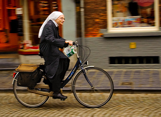 Toen dominee overleden was, was Kathy aangewezen op haar fiets om boodschappen te doen. Ze ging met tassen vol aan alle kanten van de fiets (en diverse keren met een taart op het stuur) met wapperende kleren door het dorp. Ook kocht ze regelmatig bloemen, die ze dan gul uitdeelde zo hier en daar. (Mij heeft ze ook eens een roos gebracht) Ze ging ook met regelmaat met de fiets naar een klooster in Egmond.