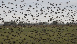 Een enorme zwerm spreeuwen passeerde luid kwetterend ons huis. Het deed mij ook denken aan die beroemde film van Alfred Hitchcock uit 1963, “The Birds”.