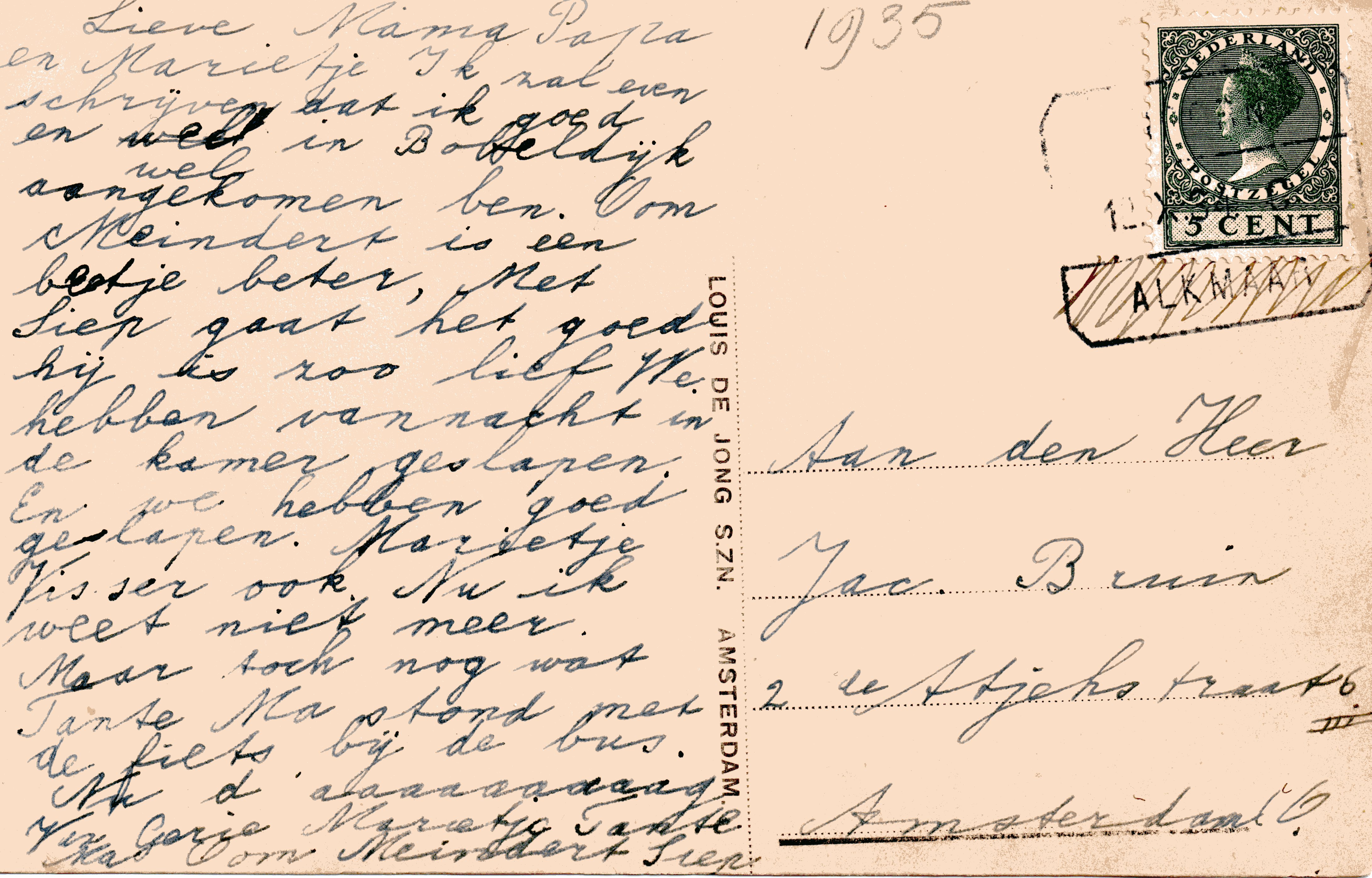 Een nieuwe “Groeten uit Bobeldijk” kaart uit 1935 werd ons door Siep Kamminga toegezonden. De tekst op de achterkant van de kaart geeft in het klein een doorkijkje naar hoe een -waarschijnlijk- logeerpartijtje in die jaren verliep.